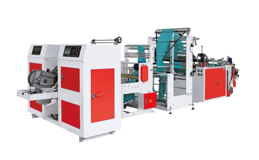 ONE LINE AUTOMATIC BAG-ON-ROLL MAKING MACHINE CORELESS WITH TWO TIMES V-FOLDING DEVICES